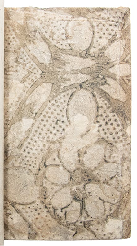 1741 In-12 (162 x 102 mm), basane marbrée, dos lisse fleuronné, roulette en place des nerfs, palette en pied, titre doré, plats encadrés d'une roulette et d'un double filet, roulette sur les coupes, couverture de papier peint de l'époque conservé (reliure hollandaise postérieure), xlvi, 138 p., (34) p. de table, frontispice gravé, non rogné, témoins conservés. Londres [i.e. Amsterdam?] chez van der Hoek, 1741.