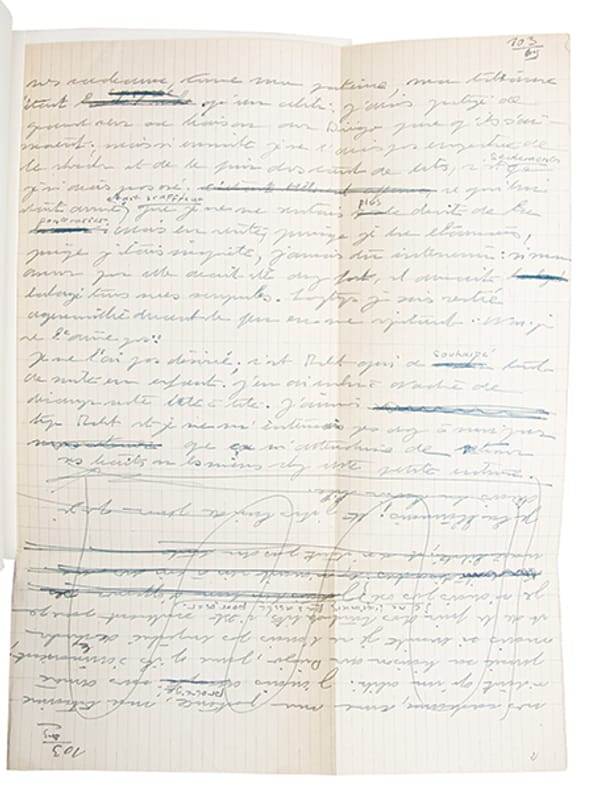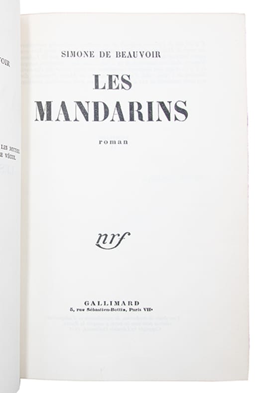 Édition originale de ce roman à clef largement autobiographique, couronné par le prix Goncourt en 1954 et dédié à Nelson Algren, romancier américain proche du communisme, avec lequel Simone de Beauvoir entretint, à partir de 1949, une relation intense.Un des 10 exemplaires hors commerce sur vélin pur fil Lafuma-Navarre, deuxième papier (n° H).Précieux exemplaire, enrichi de 4 feuillets autographes du manuscrit et de 3 feuillets dépreuves corrigées du tapuscrit, insérés en tête.Les deux premiers feuillets manuscrits correspondent aux pages 61-62 de lédition, où le personnage principal, Anne Dubreuilh, sinterroge sur sa relation avec sa fille Nadine. Au verso du premier feuillet figure une première rédaction inédite, dans laquelle lhéroïne menace denvoyer sa fille à la campagne ; le passage, brusquement interrompu, est biffé par lautrice. Au recto, Simone de Beauvoir reprend la scène et substitue à cette ébauche une introspection plus ample, où Anne questionne sa place de mère ; léducation bourgeoise cède ainsi devant une analyse psychologique plus nuancée. Les feuillets dépreuves corrigées reprennent ce développement, en conservant certains éléments inédits, supprimés dans la version définitive.Les feuillets suivants, manuscrits et tapuscrits, se rapportent aux pages 122-123, où Henri affirme son refus dadhérer au Parti communiste ; ils éclairent, à létat préparatoire, sa position face à lhypothèse dune réforme interne du Parti.Les feuillets portent des corrections autographes, dune écriture détachée, de la main de lautrice.(Francis et Gontier, Les écrits de Simone de Beauvoir, 1979, p. 166-172).Bel exemplaire, parfaitement conservé, dans une fine et élégante reliure de Georges Devauchelle.