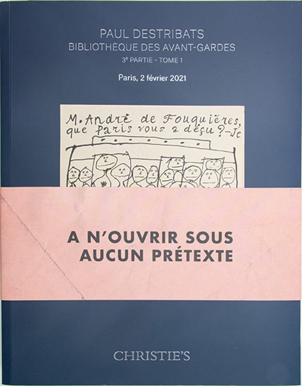 Catalogues de la troisième vente de la bibliothèque de Paul Destribats organisée par Christie's en 2021.Paul Destribats (1926-2017) fut lun des plus grands collectionneurs de livres de son temps. Sa bibliothèque, forte de plus de 6 000 volumes, manuscrits et documents imprimés consacrés aux avant-gardes du XXe siècle, compte parmi les plus remarquables jamais proposées sur le marché. Elle offre une vision encyclopédique des multiples courants européens, américains et même asiatiques, et réunit des uvres des principales figures de ces mouvements : Man Ray, Tristan Tzara, Francis Picabia, Marcel Duchamp ou encore Pablo Picasso.Exemplaire à l'état de neuf.