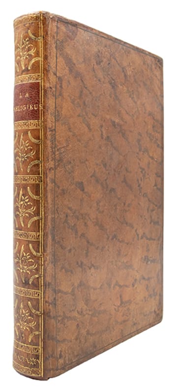Edition originale de cette oeuvre majeure dans lhistoire des Lumières françaises, que Diderot entreprit dès 1760 sous la forme dune mystification littéraire avant quelle ne paraisse en librairie dans sa version définitive en octobre 1796, soit douze ans après la mort de lauteur.Inspiré dun fait réel, laffaire de Suzanne Delamarre, transposée dans le personnage de Suzanne Simonin, le roman développe une critique puissante des institutions conventuelles et une satire aiguë de lhypocrisie sexuelle et morale du XVIIIe siècle, scandale dont les prolongements se manifesteront encore au XXe siècle avec linterdiction du film de Jacques Rivette.A la fois réquisitoire contre lenfermement religieux, réflexion sur le désir et plaidoyer en faveur de la liberté individuelle, le texte associe étroitement analyse psychologique, ironie narrative et interrogation philosophique."Aussi bien roman érotico-philosophique des corps et des âmes que conte satirique malicieux, l'ouvrage peint sur le vif, outre le personnage de l'innocente Suzanne, plus ambiguë qu'il n'y paraît, plusieurs figures inoubliables de confesseurs et de moniales, dont notamment celle de la supérieure de Saint-Eutrope, si prompte à déshabiller la jeune couventine" (La République des Lettres, éd. Payot).(Adams, RC1. Tchemerzine-Scheler, II, 969).Quelques petites tache claires éparses.Bel exemplaire, imprimé en partie sur papier bleuté, grand marges, bien relié à l'époque, bien conservé.