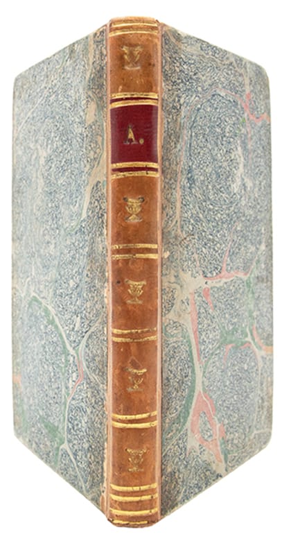 In-16 (130 x 85 mm), demi-veau blond, dos orné de doubles filets gras en place des nerfs et d'un fer à l'urne répété au centre, pièce de titre (un discret "A") sur veau rouge (reliure de l'époque), (2), xx, p. 24-144, 2 planches gravées. Paris, Chez tous les marchands de nouveautés, 1793.