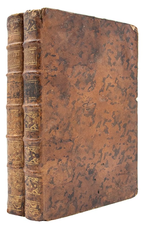 2 volumes in-8 (188 x 121 mm), veau moucheté de l'époque, dos à cinq nerfs ornés de compartiments cloisonnés et fleuronnés, pièces de titre et de tomaison, tranches rouges, (4), 362 p. et (4), 362 p. Genève, chez Isaac Bardin, 1781.