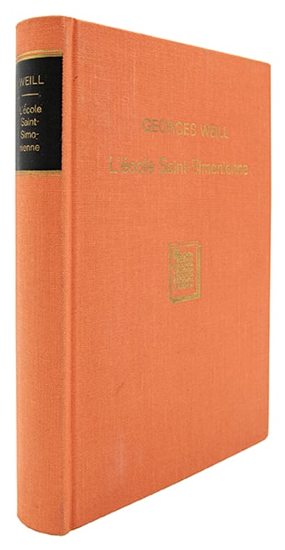Édition originale de cette étude fondatrice, thèse complémentaire de doctorat ès lettres de Georges Weill (1865-1944). Premier ouvrage d'ensemble consacré à l'école saint-simonienne, des origines du mouvement (1825) jusqu'aux prolongements contemporains dans le domaine du crédit, des travaux publics et de la pensée sociale, l'auteur retraçant le parcours des principaux disciples, d'Enfantin et Bazard aux Péreire et Michel Chevalier. Salué par Émile Faguet dans la Revue des Deux Mondes, l'ouvrage demeure une référence historiographique essentielle sur le socialisme utopique français du XIXe siècle.Bon exemplaire.