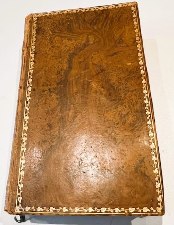 A Paris, chez J. DE LA TYNNA, (chez l'auteur), 1812. In-12, XXXVI (introduction)-487 pp-[2] errata. Pleine reliure de l'époque en basane ocre, dos lisse richement orné, frise de feuillage et un filet dorés encadrant les plats, pièce de titre en maroquin rouge, signet. Coiffe inf arasée.