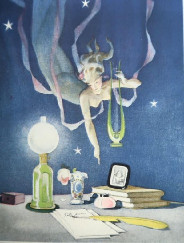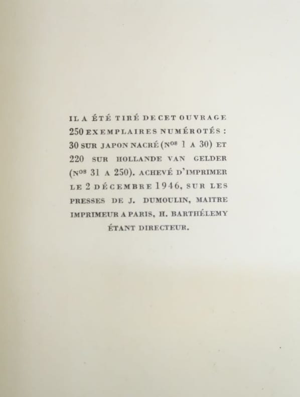 Paris, H. Piazza, L'Édition d'Art, 1946. in-8, (22 x 15 cm), broché, couverture illustrée et rempliée, 8-[6]. pp.