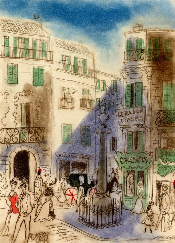 Paris, Émile-Paul Frères, 1947. 296 x 235 mm, 266-(6) pp. dont frontispice couleurs et titres, (2) ff. blancs, ill. eaux-fortes en bandeaux et en pleine page de GRAU-SALA, en feuilles sous chemise, première de couverture illustrée, chemise cartonnée et étui, dos de la chemise cartonnée légèrement insolé, coupes et coins de l'étui frotté, très bel état. Tirage à 400 exemplaires, 1 des 50 ex. sur Vélin d'arches, 1 des 20 premiers (ex. n° 11) auxquels il a été joint un dessin original, une suite en premier état et une suite de l'état définitif de 31 planches chacune, cet exemplaire comporte en plus une planche refusée qui n'est pas mentionnée dans le justificatif de tirage. Très bel exemplaire.