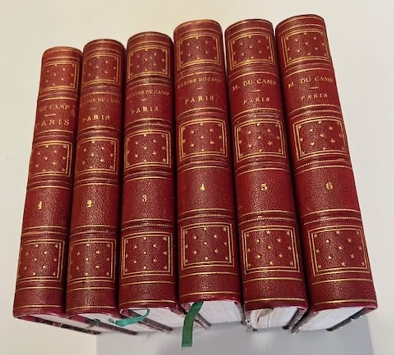 Paris, Librairie Hachette, 1975. Six volumes in-12, 395- (avec 26 pages d'introduction)-372 -424 - 437- 399 et 402 pp (avec table analytique). Demi-chagrin rouge, dos orné de caissons double filet doré, étoiles dorées, auteur titre et tomaison en lettres dorées. (reliure de l'époque).