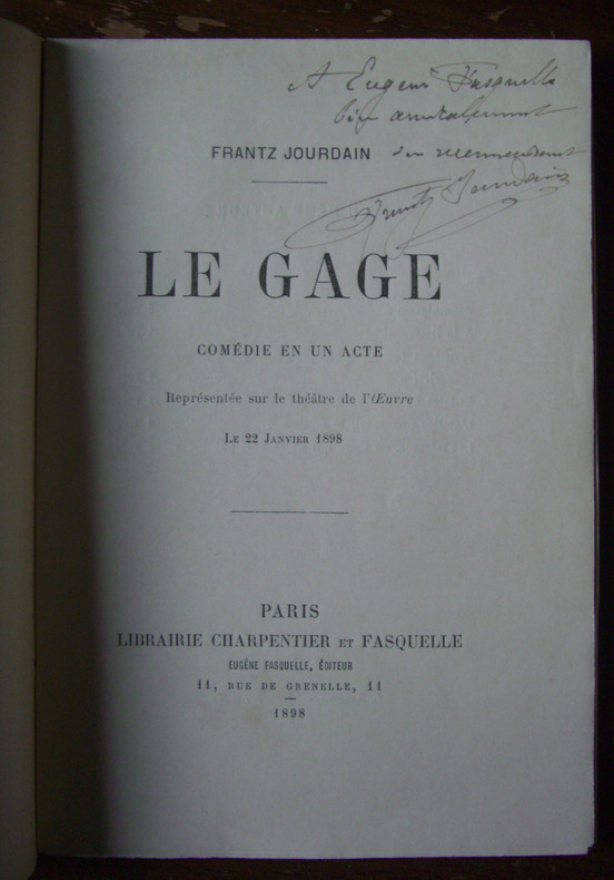 Edition originale. Envoi de l'auteur à son éditeur Eugène Fasquelle. Bord de la couverture un peu jauni sinon bel exemplaire non coupé. PRIX PORT ENVOI EN COLISSIMO INCLUS POUR LA FRANCE MÉTROPOLITAINE (Forfait de 5 euros déductible pour une remise en main propre. Nous consulter pour un envoi vers une autre destination).