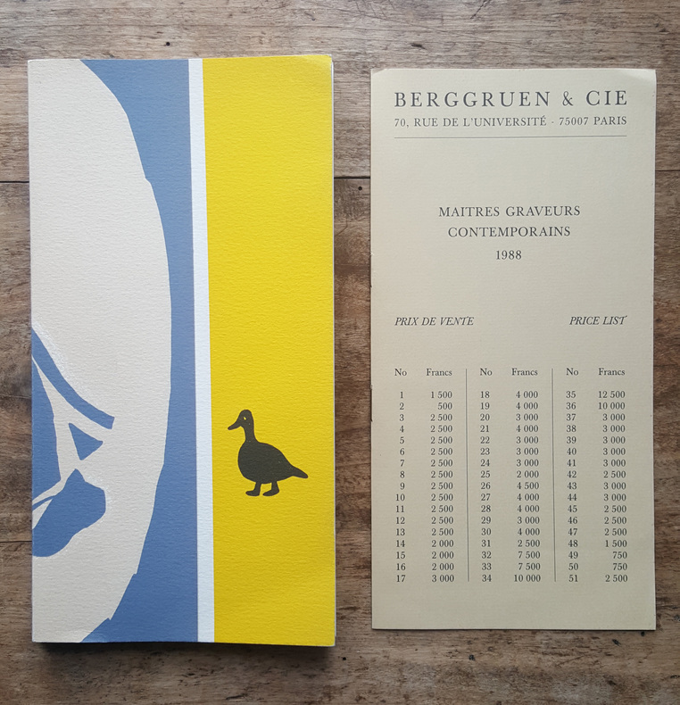 1988 Edité par Berggruen & Cie, Paris, 1988 Catalogue 90 de la collection Berggruen. Présentation d'estampes décrites et reproduites. La couverture est une LITHOGRAPHIE originale en couleurs de ARROYO. Avec la liste volante des prixuio