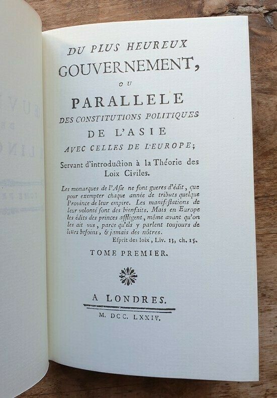 Paris, EDHIS, 1970, [A Londres, s.e. 1774] in 12 reliure pleine basane havane de l'éditeur imitant un ouvrage du XVIII ème siècle, 147 et 255 pages (deux tomes en un volume)