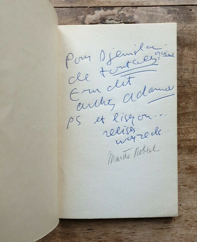 "Préface de Marthe Robert et Arthur Adamov. La première pièce est traduite par Arthur Adamov, les deux autres par Marthe Robert. . Envoi d'Arthur Adamov contresigné par Marthe Robert: ""A Djemila , vraiment [souligné] de tout cOeur [doublement souligné] [puis illisible] Arthur Adamov P.S. et lisez ou... relisez Woyceck"". Bel exemplaire."