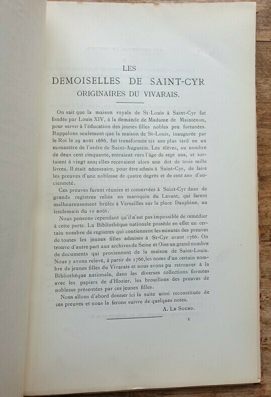 Extrait de la Revue du Vivarais illustrée (1902-1903). Tiré à 20 exemplaires numérotés. Reproduction en noir des blasons des Demoiselles avec leur lignage et les sources généalogiques. Bel exemplaire. PRIX PORT ENVOI EN COLISSIMO INCLUS POUR LA FRANCE MÉTROPOLITAINE (Forfait de 5 euros déductible pour une remise en main propre. Nous consulter pour un envoi vers une autre destination).