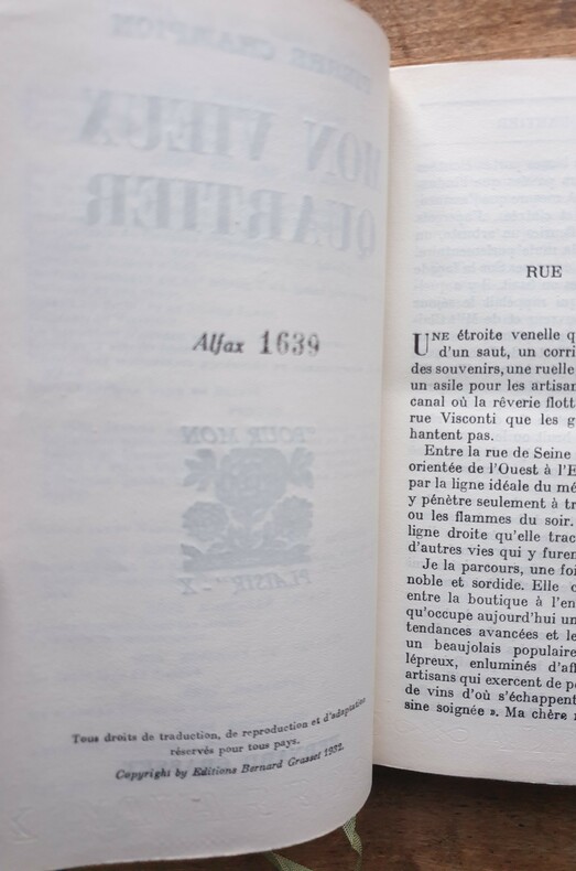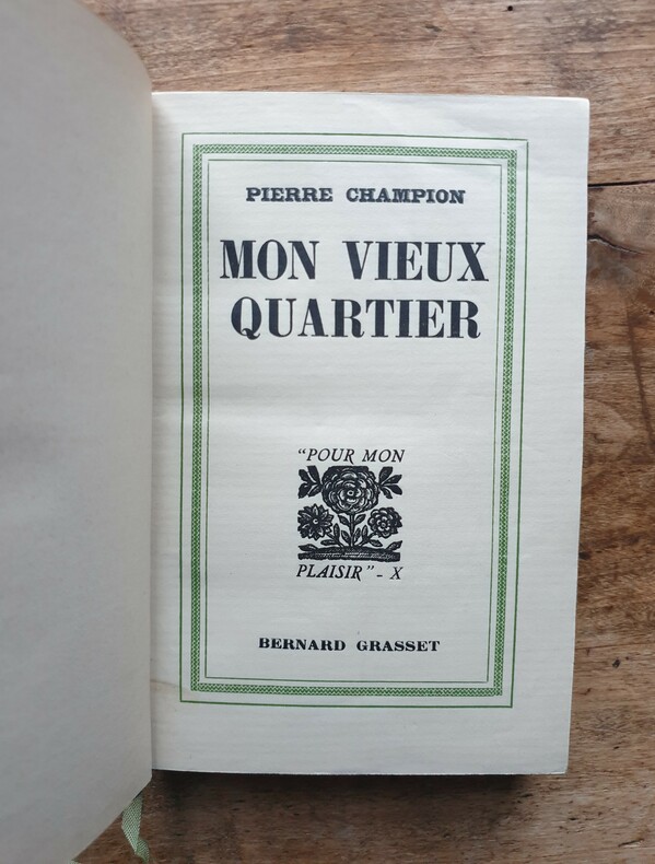MON VIEUX QUARTIER Pierre Champion couverture avec un bois gravé par Constant le Breton vol. broché, 180x120, bel état, 412pp Grasset 1932 c4