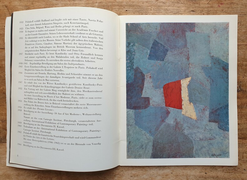 "Publication en allemand. Repères biographiques. Texte en allemand de Hanns Theodor Flemming. Texte en allemand de Ottomar Domnick. Texte en français de Serge Poliakoff (""Réflexions"" (1 page)). Liste des expositions passées de l'artiste. Liste des œuvres. 16 reproductions hors-texte avec la couverture dont un portrait de l'artiste, un fac-simile d'autographe, 14 oeuvres dont 4 en couleurs. Une autre oeuvre reproduite en noir in texte. Bel exemplaire. PRIX PORT ENVOI EN COLISSIMO INCLUS POUR LA FRANCE MÉTROPOLITAINE (Forfait de 5 euros déductible pour une remise en main propre. Nous consulter pour un envoi vers une autre destination)."