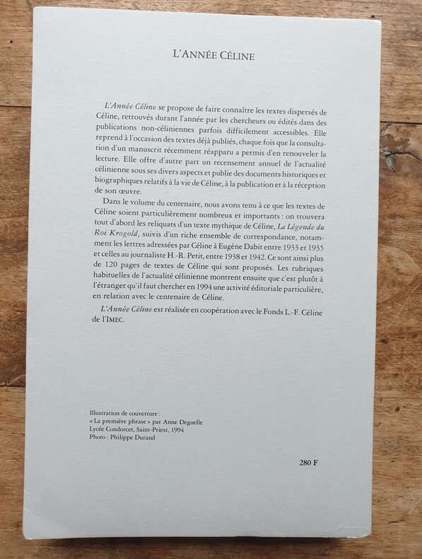 Tusson / Paris, Editions du Lérot / IMEC Editions, 1995 in 8 broché de 335 pages plus extrait du catalogue et achevé d'imprimer