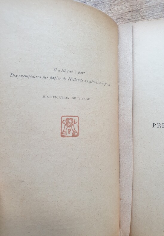 Edition originale sur papier d’édition, justifié par l'estampille rouge de Charles-Louis Philippe. Il n'a été tiré que 10 exemplaires sur Hollande. Bon état d’occasion
