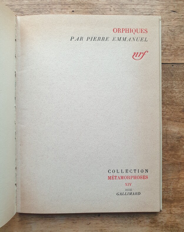 "Paris, Gallimard, 1942, collection ""Métamorphoses"" XIV" petit in 8 carré de 86 pages plus table et achevé d'imprimer