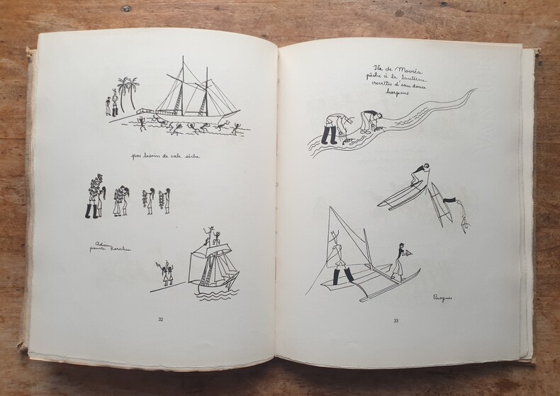 "Edition originale de cet album de dessins en noir d'une des protagonistes du célèbre voyage ethnographique dans le pacifique sud de la goélette ""La Korrigane"". Un des 60 exemplaires numérotés sur papier de Hollande après 30 exemplaires sur Japon et avant 400 exemplaires sur vélin. Toile défraîchie avec trace de mouillure mais intérieur très frais. Bon exemplaire. rare."
