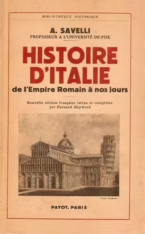 Payot Sans date. A.Savelli: Histoire d'Italie de L'empire romain jusqu'a nos jours /Payot Paris . bon état