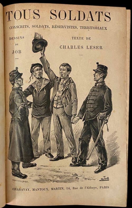 Table : Le conscrit ; Le soldat ; La cavalerie ; L'artillerie ; L'état-major et les services auxiliaires - La prochaine guerre ; La mobilisation ; Réservistes et matériaux ; Les armées européennes ; La marine française. — Charles Leser (1854-1907) est le type même de l'écrivain militaire et républicain, défenseur dans ses livres et articles de ces options, et en cela très représentatif de la militarisation de la société française après la débâcle de 1870.