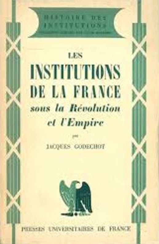 "Jacques Godechot nous présente des institutions françaises sous la Révolution et l’Empire non pas un tableau statique, mais une description qui rend compte, en même temps que de leur structure, de tous les courants intellectuels sociaux et économiques qui alimentent leur vie. Ainsi considérées, les institutions cessent d’apparaître comme une superstructure plus ou moins artificielle, pour devenir ce qu’elles sont vraiment, un cadre de vie, tributaire de l’ambiance historique et puisant en elles la sève qui les fait, selon le cas, robustes ou languissantes. Ce propos explique qu’à côté des institutions constitutionnelles et administratives, Jacques Godechot fasse une large place aux institutions économiques et sociales : la terre, la production, les échanges, l’individu et la famille. Un plan très précis qui s’articule autour des quatre grandes phases de la période révolutionnaire et impériale (monarchie constitutionnelle, gouvernement révolutionnaire, république bourgeoise de l’an III, dictature militaire) rend très aisée la consultation d’un livre qui s’avère indispensable à l’historien aussi bien qu’au juriste et au sociologue. Une abondante bibliographie adjointe à chaque chapitre complète l’équipement scientifique de ce travail probe, précis et attrayant." (Georges Burdeau, Revue française de science politique, 1952) — "Le livre de M. Godechot est un bon livre. Il constitue une lecture indispensable pour tout historien et pour tout homme qui désire savoir, sinon comprendre, ce qui s'est passé entre 1789 et 1814. Une masse énorme de renseignements ont été amassés. Des bibliographies, réduites mais bien faites, rendront service. Le style est facile, même dans l'exposé de certaines matières rebutantes comme l'organisation financière ou judiciaire..." (Pierre Lebrun, Revue belge de philologie et d'histoire)