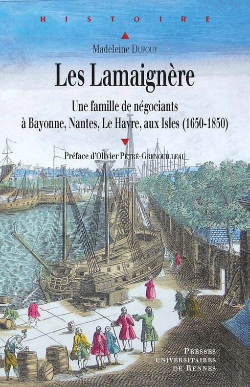 Madeleine Dupouy recrée sur deux siècles l'itinéraire collectif d'une famille de Bayonne, les Lamaignère et de ses alliés, les Labarthe, les Drouilhet, les Despinose et les Drouillard, dans les ports où ils se sont installés : Nantes, Lisbonne, Le Havre, l'Isle de France et Saint-Domingue. Elle brosse leur évolution, leur cadre et leur mode de vie ainsi que les liens qui les unissent. Elle souligne l'importance des femmes, garantes des valeurs de la culture du négoce et aptes à diriger la maison de commerce en l'absence du chef de famille. Au sein de ce groupe se détache la famille Drouilhet, banquiers bayonnais tentés par la « savonnette à vilain » dont la réussite spectaculaire a pour cadre Madrid.