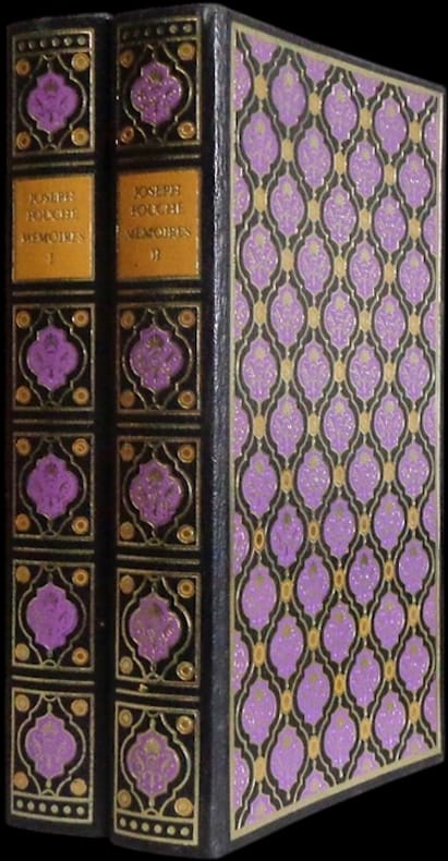 Paris Philippe de Maubuisson 1984 Deux volumes in-8 (22x14.5 cm), reliure éditeur plein cuir, ornée de motifs dorés, tranches dorées, reproductions de gravures d'époque, 290 et 265 + XX pp. Tirage de tête limité à 1500 exemplaires, celui-ci n° 596, édition sur vergé filigrané.