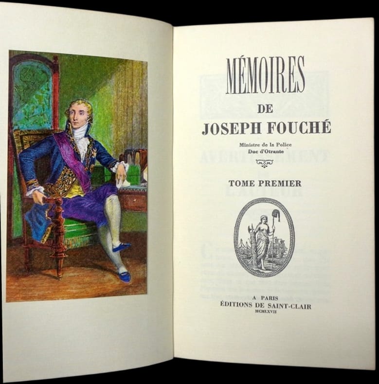 Homme de la manigance et du complot, ministre de la Police sous le Directoire et le Consulat, mais aussi sous l'Empire et durant les Cent-Jours, nul n’incarna mieux que Joseph Fouché (1759-1820) l’omnipotence ambiguë des forces de l’ombre et le cynisme de l’Histoire cachée. Survivant aux changements de régimes, tenant les puissants à merci, il fut fait comte d’Empire puis duc d’Otrante par Napoléon. Ses sulfureux Mémoires, rédigés pendant son exil en Autriche, en 1816, apportent sur la Révolution et l’Empire l’extraordinaire témoignage d’un des hommes les mieux renseignés de son temps. À l'image de leur auteur, ses Mémoires, publiés quatre ans après sa mort, en 1824, ont suscité une vive controverse. S'ils sont unanimement jugés passionnants, beaucoup de contemporains ont mis en doute que Fouché en soit l'auteur. Louis Madelin les tient pour authentiques, Jean Savant non, Jean Tulard ne se prononce pas. Une source indispensable à quiconque s'intéresse à l'histoire de la Révolution et de l'Empire. — "Il est certain que Fouché a songé à écrire ses mémoires entre 1815 et 1820. Le texte paru en 1824, quatre ans après sa mort, est-il authentique ? Alphonse de Beauchamp, ancien employé du comité de sureté générale puis du ministère de la police, historien des guerres de Vendée et fabricant de mémoires s'en est déclaré l'auteur. (...) Autre problème : celui de la partialité du témoignage. L'intérêt de l'ouvrage n'en est pas moins certain". (Tulard, 560