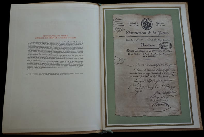 P., Maurice Devriès éditeur, v. 1930-1950, 10 vol. in-4° (34,5 x 25,5 cm), Broché l'ensemble sous emboîtage cartonné toilé grège ; soit 9 volumes reproduisant 100 fac-similés contrecollés sur papier fort de documents autographes authentiques des plus grandes personnalités historiques françaises, du Moyen Age au 19e siècle (avec le texte en regard de chaque document reproduit) ; et un dixième volume paru en 1946 (Du fond de l'abîme vers la résurrection) reproduisant 46 autographes, documents et photos relatifs à la seconde guerre mondiale en France