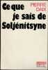 Depuis plus de dix ans – depuis la publication en français d’ « Une journée d’Ivan Denissovitch » à laquelle il fut étroitement mêlé –, Pierre Daix n’a cessé d’étudier et de se montrer l’indéfectible défenseur de l’œuvre de Soljénitsyne. La bataille de ce dernier pour « les droits de l’écrivain » ne pouvait pas ne pas toucher directement les Lettres françaises dont Pierre Daix était, avant leur disparition, rédacteur en chef. Ce journal, né de la résistance à l’obscurantisme hitlérien, entra en lutte contre le retour aux errements staliniens dont témoignaient, en URSS, l’assassinat littéraire ou artistique, la coercition ininterrompue, la menace psychiatrique, l’organisation étatique de la misère matérielle à l’encontre des éléments jugés « pernicieux ». Au centre de ce conflit : le « cas Soljénitsyne ». Ce livre réunit le récit de sa lutte et de sa persécution, l’analyse de son œuvre et de son rôle, là-bas comme ici, par un communiste français de la génération de l’ombre, lui-même ancien déporté : les Lettres françaises disparues, ce témoignage entend les continuer quelque peu, sur l’essentiel. (4e de couverture) — "Pierre Daix a mis des années – vingt-cinq ans exactement – à se débarrasser de la tunique de Nessus du stalinisme. Son livre n'est – pas encore – l'étude littéraire d'ensemble que mériterait l'immense écrivain qu'est Soljénitsyne. C'est, plus modestement, le récit de sa découverte en France, ainsi qu'une analyse des obstacles qu'il a rencontrés et des difficultés qu'il éprouve encore à se faire entendre. En fait, cette analyse débouche sur un réquisitoire..." (Pierre de Boisdeffre, Revue des Deux Mondes, 1973)