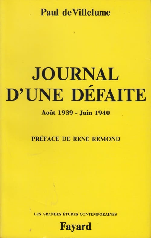 Précieux témoignage posthume du colonel de Villelume, conseiller militaire de Paul Reynaud en 1940. — "Cet ouvrage est un journal au plein sens du terme, tenu par un officier, conseiller de la délégation française à la Société des nations et affecté au ministère des Affaires étrangères, un journal, c'est-à-dire, comme il l'écrit, lui-même dans son avant-propos « une prison où l'on enferme les faits dès qu'ils naissent pour les soustraire aux déformations ». Le journal s'ouvre à la date du 23 août 1939, sur la nouvelle de « la conclusion, à la fois si redoutée et si inattendue, du pacte germano-soviétique [qui] nous plonge dans la consternation »... « Je ne vois Gamelin qu'un instant... il ne fait aucun commentaire. Coulondre est inquiet. Il s'attend naturellement à un renforcement de l'intransigeance allemande ». La veille au soir, conseil de cabinet. Que faire ? « Mandel et Reynaud avaient été les seuls à défendre une solution de fermeté. Daladier a cependant fini par se ranger à leur avis. Tous les autres ministres étaient mous. » (...) Villelume est, avec raison, très sévère à l'égard du Général Gamelin dont il demande le départ avec insistance à Paul Reynaud, il ne se montre pas moins sévère à l'égard des Anglais, auxquels il reproche erreurs, tergiversations, hésitations..." (Jean-Michel Lévy, Revue d'histoire moderne et contemporaine, 1977)