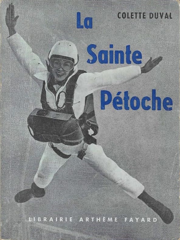 En 1956, au Brésil, la parachutiste Colette Duval (1930-1988) saute à une altitude de 12.080 mètres et ouvre son parachute à seulement 250 mètres du sol, battant ainsi le record du monde toutes catégories en chute libre. Pour en arriver à un tel exploit, il a fallu, un jour, sauter pour le première fois… Dans « La Sainte Pétoche », son livre de souvenirs, elle raconte notamment ce premier saut.