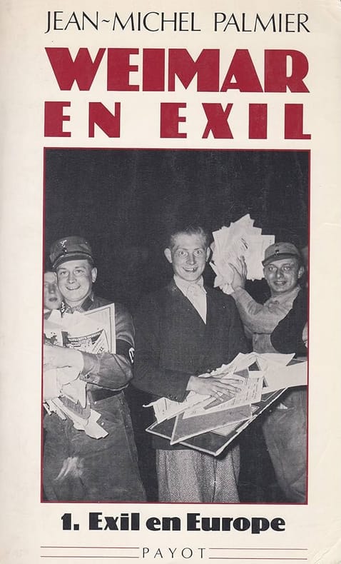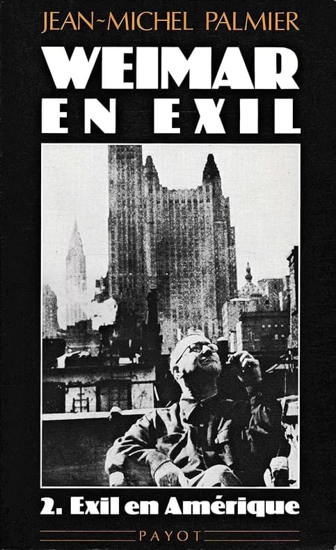 Tome 1 : Exil en Europe, 1933-1940 : de l'incendie du Reichstag à la guerre d'Espagne ; Tome 2 : Exil en Amérique, 1939-1945 : de la seconde guerre mondiale au maccarthysme. — "Ils furent des centaines, des milliers d'intellectuels, d'artistes, d'écrivains, de militants, d'opposants divers à quitter l'Allemagne à partir de 1933, par suite de l'avènement de Hitler au pouvoir. Tous n'étaient pas menacés dans leur vie. Mais ils savaient que sous le régime nazi, ils ne pourraient plus écrire, créer librement, qu'ils devraient choisir entre le silence et la collaboration, vivre dans la honte. Ils étaient, selon le mot de Heinrich Mann, « la meilleure Allemagne » et ne reconnaissaient plus dans l'Etat qui légalisait la terreur et la barbarie, leur pays. Qualifiés par Goebbels de « cadavres en sursis », ils émigreront aussi bien à Paris, à Amsterdam, à Prague, à Oslo, à Vienne, qu'à New York, Los Angeles, Shanghaï, Mexico, Jérusalem ou Moscou. Ecrivains, poètes, peintres, architectes, cinéastes, metteurs en scène ou acteurs – on trouvait parmi eux les plus grands noms de la culture allemande des années 20 -30 – ils tenteront, tout au long de leur exil, de lutter contre le national-socialisme par leurs oeuvres, d'éveiller le monde au danger hitlérien, croyant encore au pouvoir de l'intelligence et de la moralité contre la barbarie. Ces deux volumes retracent leur histoire, celle de leurs combats, de leurs échecs, de leurs rares victoires en suivant leur destin depuis la montée du national-socialisme jusqu'au retour d'une partie des survivants dans leur patrie en ruines. Ils s'efforcent de répondre à une exigence fondamentale de Walter Benjamin : écrire l'histoire du point de vue des vaincus. On peut brûler des livres, martyriser des hommes. On ne peut anéantir l'esprit qu'ils portent. Et l'histoire de cette émigration antinazie nous concerne plus que jamais." (4e de couverture) — "La victoire d'Adolf Hitler en 1933 et l'écroulement de la République de Weimar va obliger des milliers d'intellectuels allemands – anti-fascistes, démocrates ou simplement juifs – à fuir leur pays. Selon le mot bien connu de Karl Kraus, l'Allemagne, nation des Dichter und Denker (poètes et penseurs) était devenue celle des Richter und Henker (juges et bourreaux). Peu nombreux furent les intellectuels de renom qui – comme Gottfried Benn ou Martin Heidegger – acceptèrent de pactiser avec le nouveau régime. Cet exode massif de l'intelligentsia, sans précédent à l'époque moderne, va laisser sa marque dans la culture européenne et mondiale. Le livre de Palmier est un véritable monument à la mémoire de cette génération brisée et dispersée par le nazisme ; en utilisant une vaste bibliographie, les archives de deux continents, des interviews avec des survivants, il apporte une masse d'informations inédites et réussit à reconstituer tout un chapitre oublié de l'histoire culturelle du XXe siècle..." (Michael Löwy, L'Homme et la société, 1988)