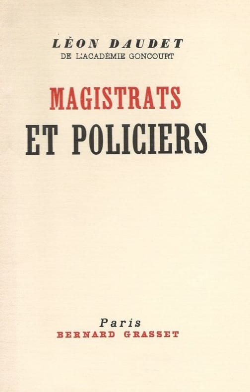 L'affaire Plateau, l'affaire Philippe Daudet, l'affaire Hanau, l'affaire Oustric, l'affaire Stavisky, l'affaire Prince, etc. Dans cet ouvrage, Léon Daudet exprime le fantasme cher à l’extrême droite comme à l’extrême gauche des pouvoirs occultes de la Sûreté – cette « effroyable caverne » –, de ses Renseignements généraux – « dernière armature [de boue et de sang] du régime républicain »– et la véritable fascination qu’exerçait l’« aile marchante et tueuse de la maçonnerie », soupçonnée des crimes les plus audacieux. Après la mort de Syveton, le trésorier de la Ligue de la patrie française, Maurras, dénonça un « crime policier et maçonnique déguisé en suicide ». – "Magistrats et Policiers" démontre "la terrible décomposition d'une grande partie de la magistrature debout et assise sous l'impulsion de la démocratie parlementaire." (Léon Daudet)