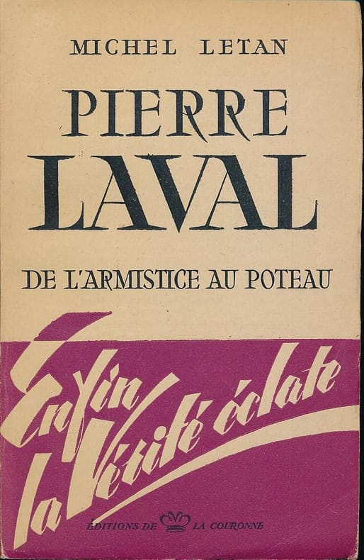 "Pierre Laval est inconnu de la presque unanimité des Français et des autres. Pour eux, il est l'homme à la cravate blanche, l'homme des mine de Bohr, ou de bore, on n'est pas fixé ; l'homme qui a marié sa fille à un vicomte au nom connu et à la double nationalité, en lui donnant une dot "volée au peuple"; c'est l'homme de Chateldon, celui des eaux gazeuse ; le maquignon des polémistes de droite, le sale parlementaire pour les fascistes, le fasciste pour les hommes de gauche ; c'est aussi l'homme des 10 % pour les fonctionnaires qui ne lui ont jamais pardonné. C'est plus encore, c'est l'homme de Montoire, l'homme de Vichy, celui de la relève et du S.T.O. ; celui de la collaboration pour tout dire. (...) Cet ouvrage n'est pas une vie de Pierre Laval ; c'est la déposition d'un témoin. La plupart des faits rapportés datent de l'arrivée au pouvoir de Laval, en 1940, jusqu'à son départ en Espagne en avril 1945..." (Préface) — Michel Letan est le pseudonyme du journaliste Guy Servan.