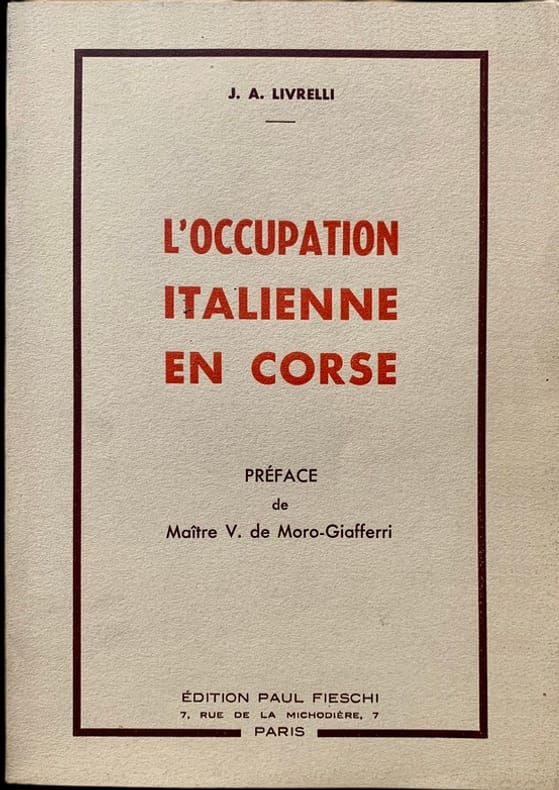 "En 1949, l’instituteur et rédacteur ajaccien du radical-socialiste "Le Journal de la Corse", Jean-André Livrelli (1874-1967), ancien déporté en Italie puis en Autriche, publie "L’occupation italienne en Corse". Cette violente charge italophobe consacre néanmoins ses quarante premières pages à expliquer – sous une forme plus « intuitive » que strictement historique mais très éclairante d’un point de vue anthropologique – la naissance du sentiment résistant dans la population insulaire. Viennent ensuite le récit – qui est davantage un témoignage – de la captivité des résistants corses déportés par les Italiens et enfin, une longue chronologie de la Libération de la Corse. Œuvre personnelle à plus d’un titre, son propos extrêmement « revanchard », représente une source incomparable pour ce qui est de la représentation mentale de l’Italien dans l’imaginaire social corse des années 1930-1940 et de son impact dans les processus de gestation du phénomène résistant et d’engagements personnels." (Sylvain Gregori, (Ré)écrire l’histoire de la Résistance corse, 2014)