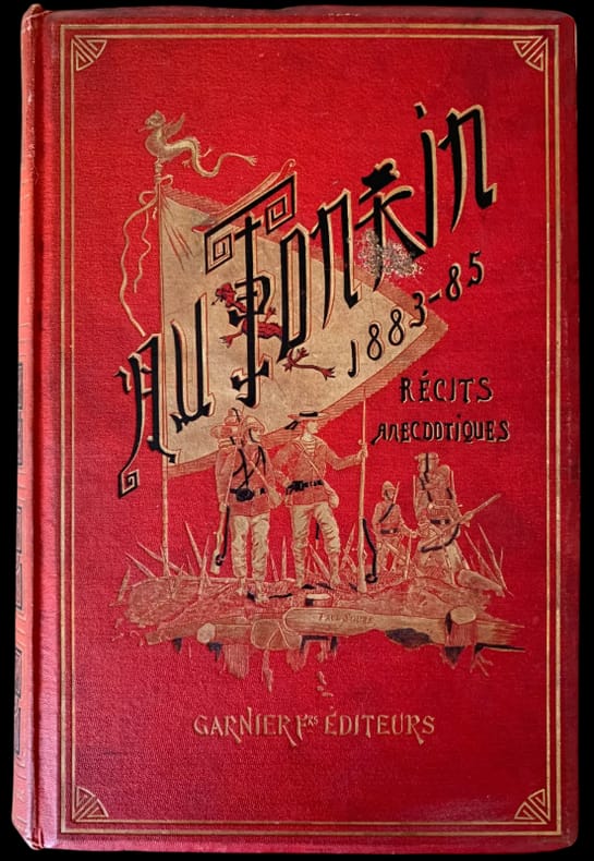 Première édition. Récit détaillé des opérations accomplies au Tonkin, depuis la mort du commandant Rivière en 1883 jusqu'à la prise des îles Pescadores en mars 1885. Dick de Lonlay, aussi habile narrateur que dessinateur, conte les épisodes glorieux et dramatiques de la conquête du Tonkin : Les Pavillons Noirs - Les Pirates de la Baie d’Along - Sontay - Bac-Lé - Fou-Tchéou - Tuyen-Quan - Langson - Formose - Les Pescadores... Autant d’épisodes militaires héroïques de la colonisation Indochinoise.