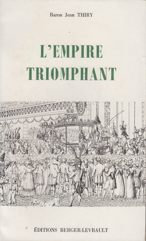 "La collection Napoléon Bonaparte s'enrichit de ce vingtième ouvrage de Jean Thiry et elle se révèle comme l'oeuvre historique la plus importante de notre temps sur l'époque napoléonienne. « L'Empire triomphant » brosse un tableau saisissant de la période allant de juillet 1809 à la fin de l'année 1810 ; ouvrage avant tout d'histoire politique, diplomatique. Bien que Napoléon ne se laisse pas détourner un seul instant de ses devoirs de souverain du grand empire qu'il a créé, son divorce, puis son second mariage, comme d'autres histoires de famille, le préoccupent beaucoup. Cependant la lune de miel même n'empêche pas l'Empereur de veiller à l'organisation et à la défense de son Etat, notamment au maintien du blocus continental et à la poursuite des campagnes d'Espagne et de Portugal. La guerre avec la Russie, qui paraît inévitable à Napoléon, se prépare... « Mais l'empire était triomphant et les périls si graves pour l'avenir ne semblaient pas pouvoir mettre en danger la surhumaine puissance de Napoléon, dont la dynastie paraissait être définitivement assurée par la naissance prochaine d'un fils. L'Empereur, en effet, ne doutait pas d'un héritier mâle et toute son espérance, toute son affection, toute son ambition se concentraient sur le futur roi de Rome. » Tous ces événement politiques et privés sont décrits par l'auteur avec beaucoup d'à-propos, sans luxe de détails inutiles mais sans omettre un trait essentiel, ce qui donne un récit coulant et d'une lecture fort attrayante." (Revue militaire suisse, 1968) Désormais les frais d'envoi sont de 6 € seulement pour les livres jusqu'à 1 kg (colissimo suivi), pour la France métropolitaine.