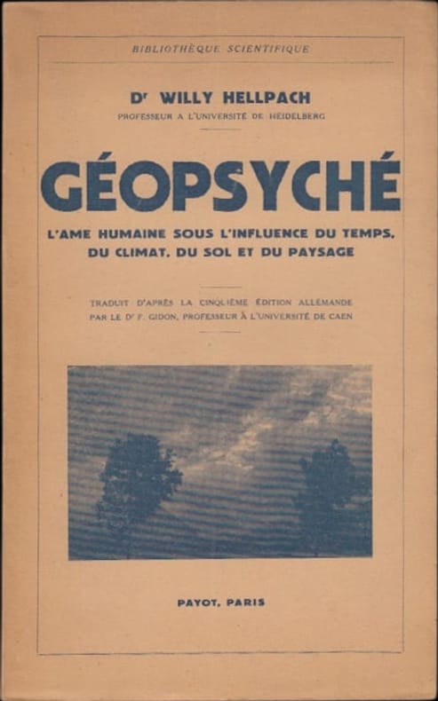 "Le destin laborieux de plus en plus lourdement dénaturé d'une humanité de plus en plus esclave de ses machines fait naître en elle une aspiration croissante vers une nature toujours plus pure. Même le plus beau parc, la campagne cultivée la plus attrayante, rappellent trop encore l'envahissement, par l'artificiel, de l'ensemble de la vie. Moins la nature est contaminée par l'artificiel, plus grand est le réconfort qu'elle procure. C'est le cas de la haute montagne, de la mer, du désert, de la forêt primitive." – "L'attrait extraordinaire qu'exercèrent les montagnes sur les touristes du XIXe siècle et le pouvoir curatif très élevé du climat des zones d'altitude à l'égard d'une multitude de maux ont donné aux travaux scientifiques concernant ce climat un caractère méthodique dont n'a bénéficié l'étude d'aucun autre climat." – Dans cet ouvrage, Hellpach cherche à saisir l'influence des facteurs naturels sur le corps au travers de réactions tout aussi bien psychiques que somatiques. C'est dans ce dessein qu'il définit les quatre manifestations suivant lesquelles la nature agit sur l'homme : le temps qu'il fait, le climat, le sol et le paysage.