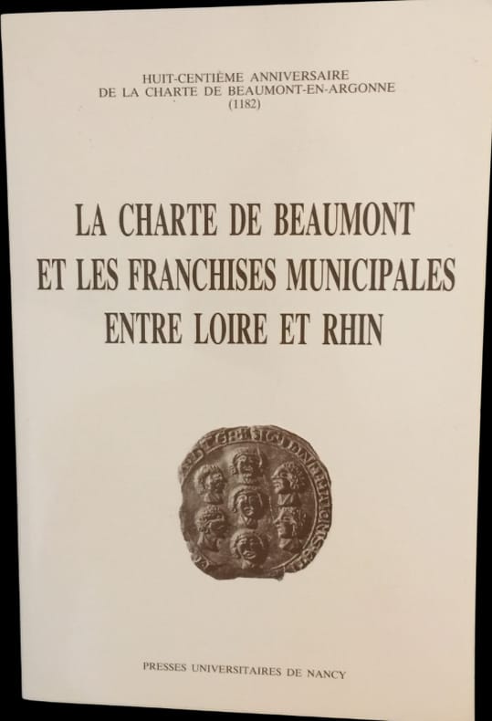 Colloque organisé à l'occasion du 800e anniversaire de la charte octroyée en 1182 au village de peuplement rural de Beaumont-en-Argonne par Guillaume-aux-Blanches-mains, archevêque de Reims, l'une des plus célèbres chartes de franchises du Moyen Age. En effet, la loi de Beaumont fut adoptée par plus de 500 villes et villages. Le présent volume renferme les actes de ce colloque. L'ouvrage est divisé en trois parties. La première est intitulée : « La diversité des franchises ». C'est la partie essentielle (p. 7-217). Elle regroupe surtout les contributions qui correspondent vraiment au sujet du colloque et qui demeurent dans le cadre du Moyen Age. La deuxième partie est intitulée : « A la lisière des chartes de franchises » (p. 221-282), la troisième : « La disparition des franchises » (p. 185-384) ; soit 19 études érudites par Lucien Musset, Albert Rigaudière, Jean Richard, Jacques Foviaux, Alain Girardot, Robert Fossier, Pierre Charbonnier, etc.