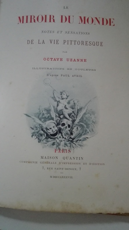 Illustrations en couleurs d'après Paul Avril.10 hors texte en couleurs. Très nombreuses illustrations monochrome ou polychrome, ornements.Édition originaletirée à 2200 exemplaires. Celui-ci sur vélin de Hollande N°871.Paris, Maison Quantin 1888 - 163 pages.Très joli et rare cartonnage de l'époque recouvert de soie moirée sable. Reliure signée de L. Claessens avec étui. Sur le 1er plat grand décor mosaïqué en couleurs et doré. Celui-ci représente un ange ailé avec un miroir à la main dans un médaillon ornementé. Dos lisse orné et doré. Non rogné. Couverture et dos illustrés conservés. Quelques rousseurs. Petite tâche en haut du dos. Dos légèrement frotté. Bon état. Format in-4° (29x21).
