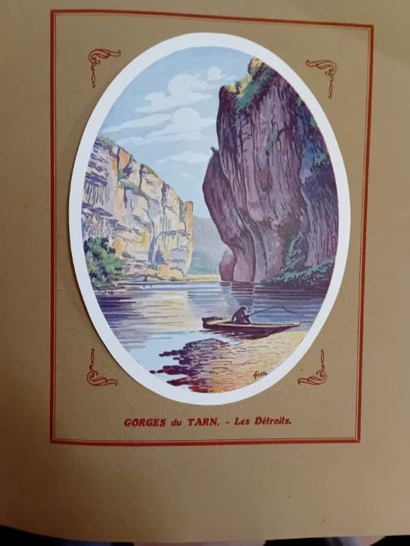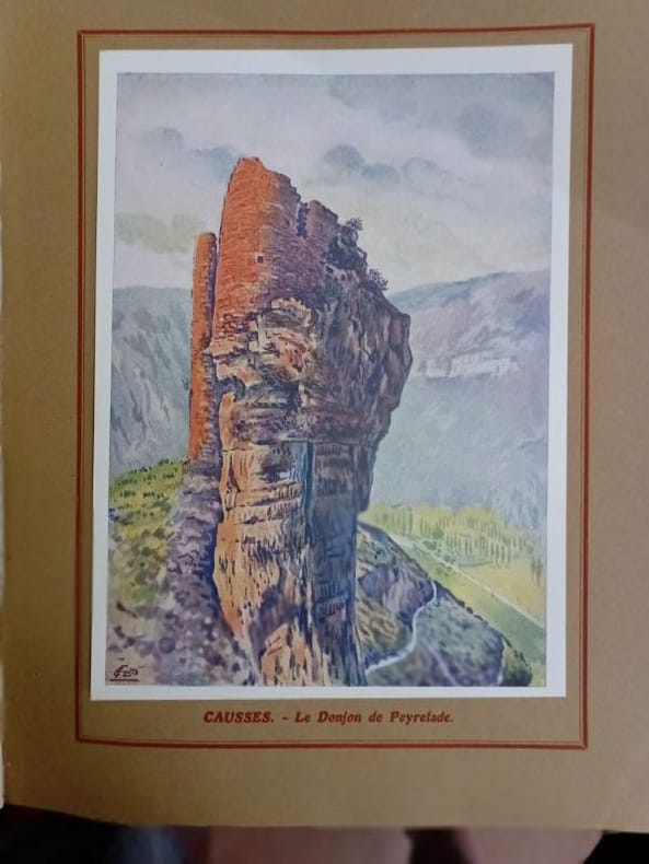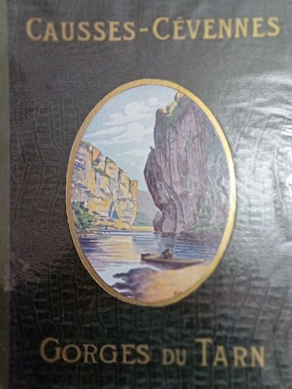Nimes, Azémard Cousins, s.d. (1925), 1 plein cuir manière serpent, dos entoilé, illustration en couleur (par E. Feste) dans un médaillon au centre du plat sup., titre doré, gardes décorées. in-4 de 102 pp., illustrations, planches h.t. en couleur (par E. Feste), collées sur bristol, texte à double filets d'encadrement ;