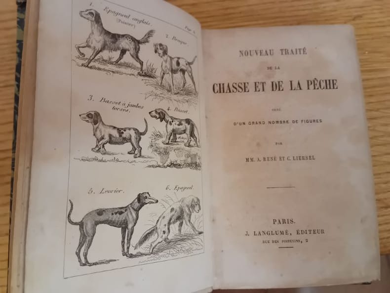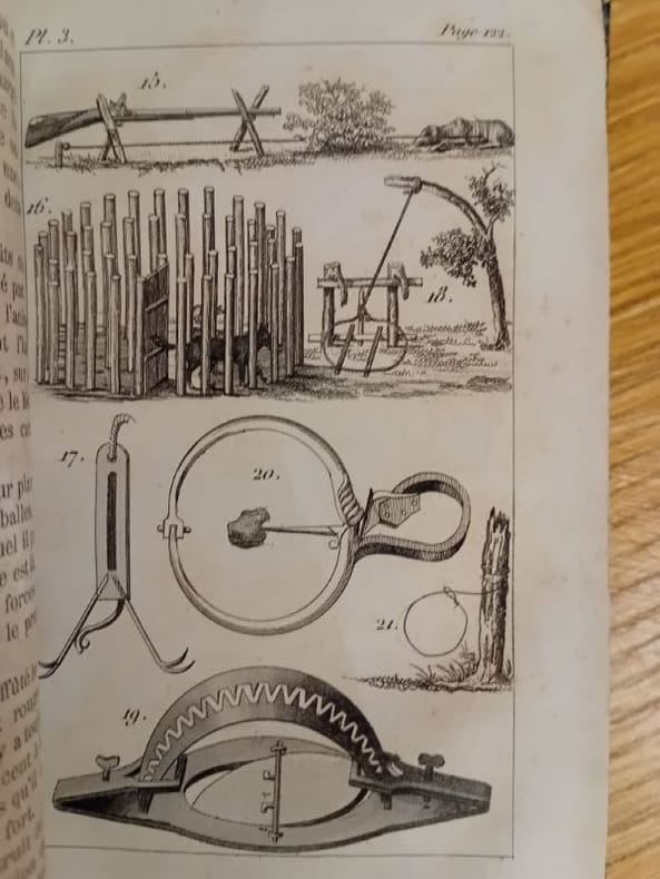 Les différentes chasses, les armes, les pièges, oiseaux, pêche à la ligne et au filet, appâts naturels et artificiels, description de chaque espèce, chasse au brochet, truite et saumon, filets, étangs, rivières et réservoirs. Thiebaud col. 773. Gaidy 327. Fermeture de la Librairie du 30/12/2025 au 11/01/2026