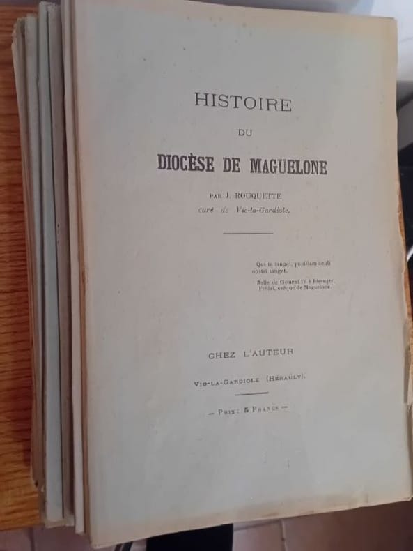 Chez l'auteur 1920 et suivantes 15 fascicules 16 x 25 broché, non coupé chaque fascicule fait 8 pages, un double (12-13) L'abbé Rouquette est d'abord curé de Vic-la-Gardiole, puis de Celleneuve à Montpellier. L'ouvrage paraît sur plusieurs années et devra faire l'objet final de 2 volumes. L'ouvrage est complet en 16 tomes, présentés en 15 fascicules. Edition d'origine.