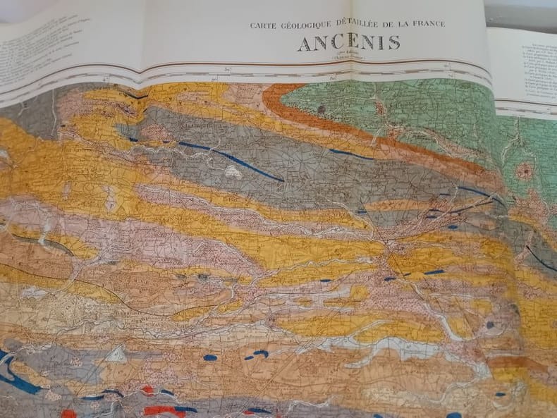 Paris Services des Mines 1967 60 x 90 cm Section Ancenis, N°105. Carte dépliante, deuxième édition, revue régulièrement depuis la première édition de 1890.
