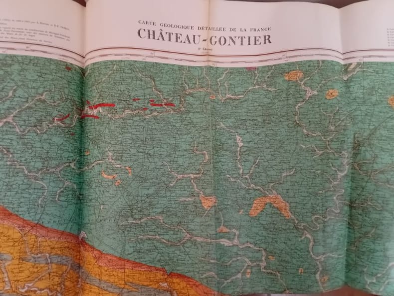 Paris Services des Mines 1967 60 x 90 cm Section Château-Gontier, N°91. Carte dépliante, troisième édition, revue régulièrement depuis la première édition de 1895 et la deuxième édiiton de 1941.