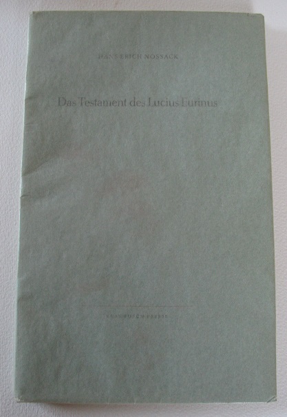 Zürich, Kurt Bösch Presse, 1964, 8° (24 x 15 cm), 3 weisse Bll., 66 SS., 5 Bll. (die 2 letzten weiss), grüne Original-Broschur mit Autor und Titel in schwarz.