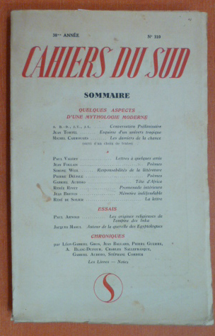 Marseille, Cahiers du sud numéro 310, 1951. In-8 broché, 528 pp. non coupées+ pp. publicitaires.