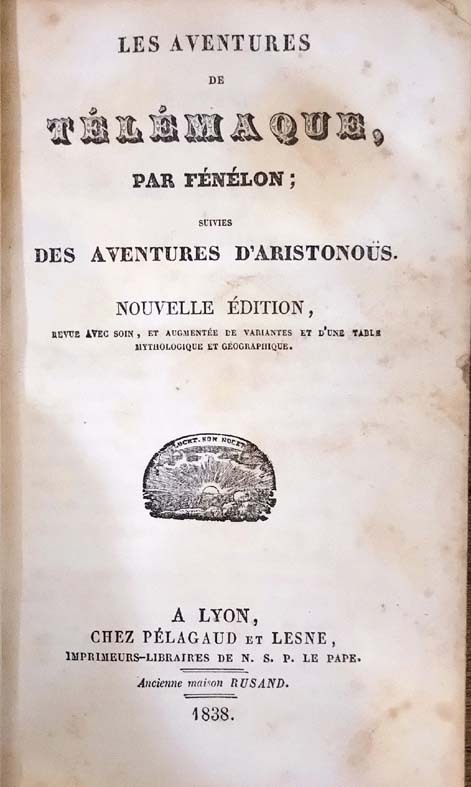Les aventures de telemaque, par fenelon, suivies des aventures d'aristonous. edition classique. A bruxelles. 1847. 456p.