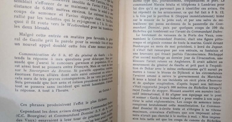 En septembre 1940, la Royal Navy et les navires de la France Libre avec le général De Gaulle à bord tente de s'emparer du Sénégal et ainsi possèder une base de dépard solide pour rallier les possessions françaises en Afrique à la France Libre. Cette opération, ménée quelques mois après Mers El Kebir, voit une forte résistance la marine française en position de force et est un échec total. L'auteur, ancien médecin de marine, parfaitement renseigné (il a été officier au service Historique de la Marine) et historien rigoureux, nous conte avec une totale objectivité les prémises, le déroulement de la bataille et ses conséquences.